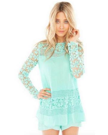 > New Arrivals > 7.7 Super Sale > WT7418 Fashion Lace Top Turquoise