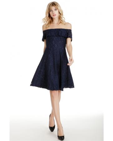 GW2131 Pretty Off Shoulder Dress Dark Blue