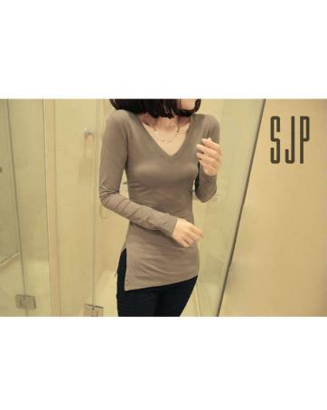 > Sold Out Items > KF514 Long Sleeved V-Neck T-Shirt Khaki