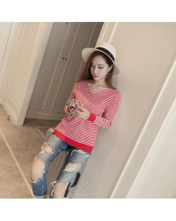 > Sold Out Items > KF526 Long Sleeved Striped Top Red