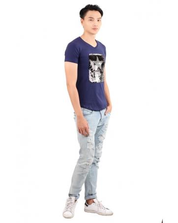 > Sold Out Items > QA-350 Men Casual Sequin Shirt Blue