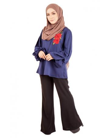 > Sold Out Items > QA-398 Women Floral Embroidery Blouse Navy Blue
