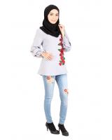 > Sold Out Items > QA-400 Women Rose Embroidery Top Blue Grey