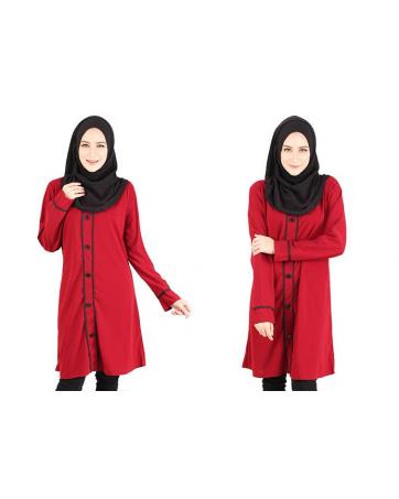 > Sold Out Items > QA-417 Button Muslimah Long Top Red