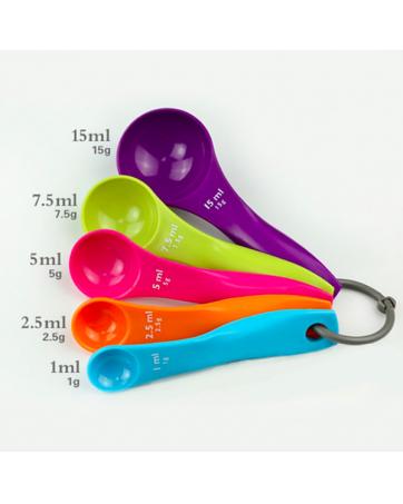 This item is sure to brighten any kitchen. Five piece measuring spoons are great tools for using when following any recipe in the kitchen.