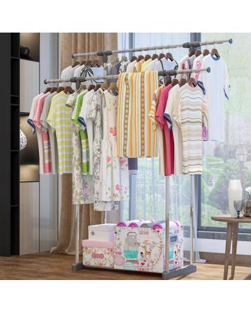 - Double Pole Adjustable Stainless Steel Cloth Hanger and Organizer Rack
