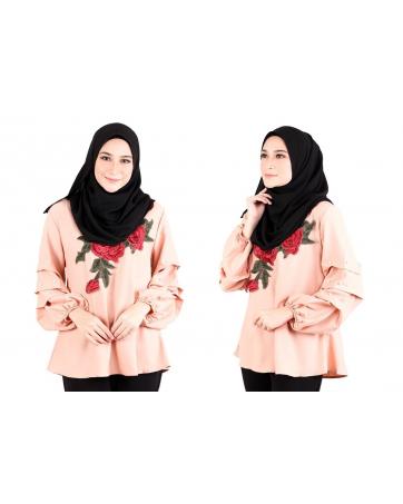 > Sold Out Items > QA-522 Floral Embroidery Blouse Peach