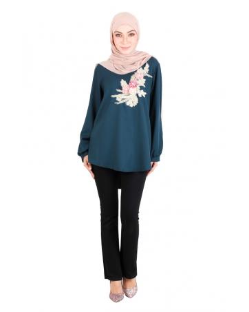 > Sold Out Items > QA-523 Women's Floral Embroidery Blouse Ocean Green