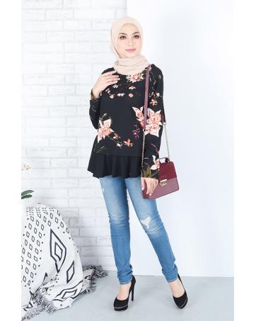 > Sold Out Items > QA-663 FLORAL PRINTED A LINE BLOUSE BLACK