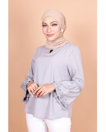 > Muslim Fashion > Tops > QA-795 MUSLIMAH V BLOUSE GREY