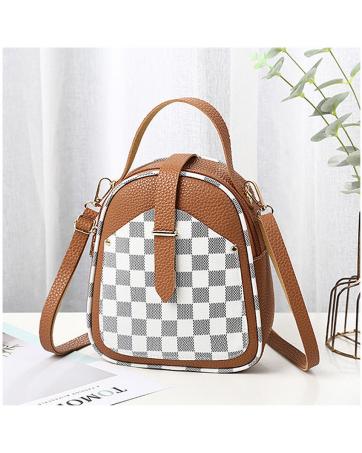 > Women Fashion > Women Bags > KW80829 Women's Checker Sling Bag Brown Grey Square